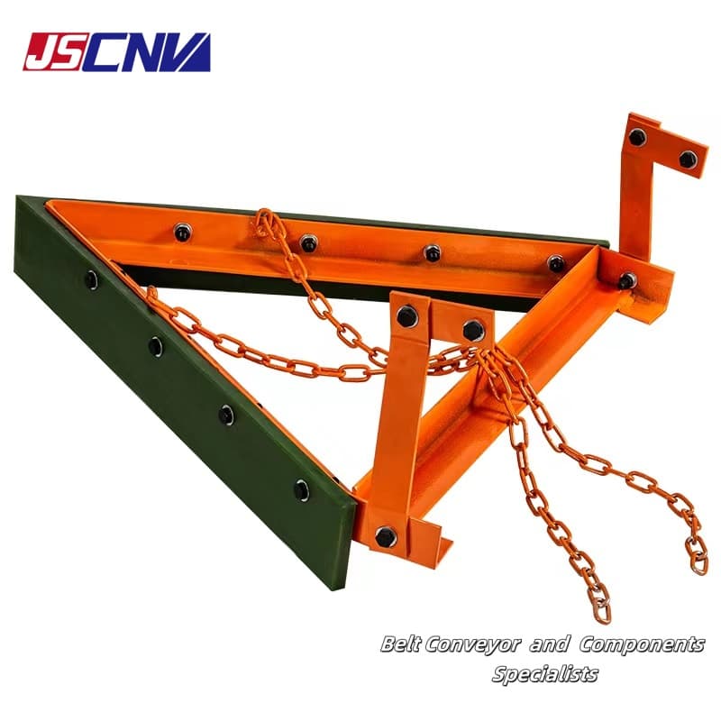 V-Plow belt cleaner ke mofuta oa sehloekisi sa lebanta le khutlang. E sebelisoa haholo-holo ka pel'a conveyor bend pulley ea conveyor lebanta le ka pel'a sesebelisoa se boima sa tensioning. E na le litšoaneleho tsa ho hanyetsa acid le alkali, ho thibela lelakabe le antistatic, ho hanyetsa ho apara ho phahameng, 'me ha e senye lebanta. Lehare le entsoe ka polyurethane e matla a phahameng, moralo o nang le sebopeho sa V o tiisa bohloeki ba lebanta, 'me moralo oa othomathike oa khoheli o netefatsa puseletso ea boiketsetso ha lehare le fela.